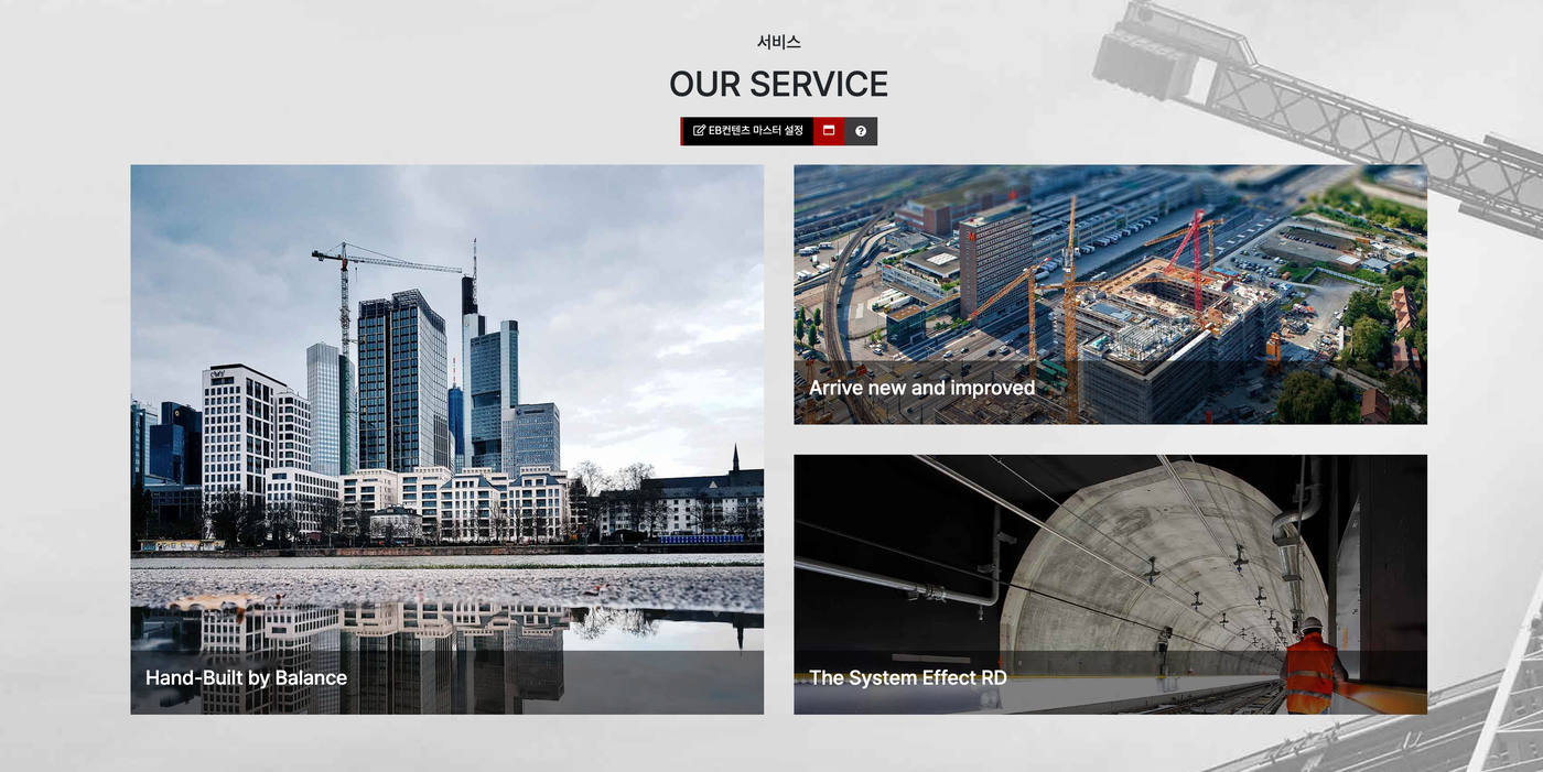 - 메인과 서브페이지에서 편집모드를 통해 손쉽게 내용 및 이미지 수정이 가능합니다.