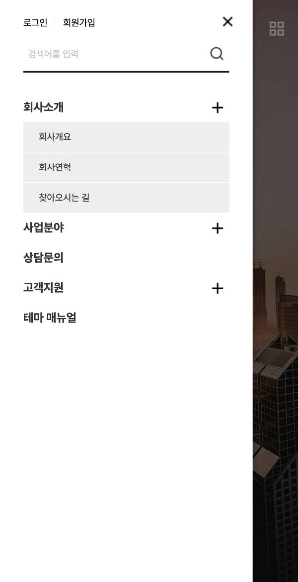 - · 로그인, 검색, 서브페이지 타이틀 등은 직접 파일 수정등을 해야 합니다.